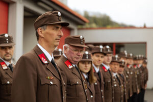 Beim Rüsthaus angekommen folgten Grußworte, Ansprachen und Ehrungen. Zahlreiche Kameraden wurden wieder aufgrund ihres jahrelangen Dienstes mit Medaillen und Abzeichen geehrt. Ebenso konnte die Feuerwehr Scheifling 5 neue Kameraden und Kameradinnen, in ihren Kreisen willkommen heißen:
