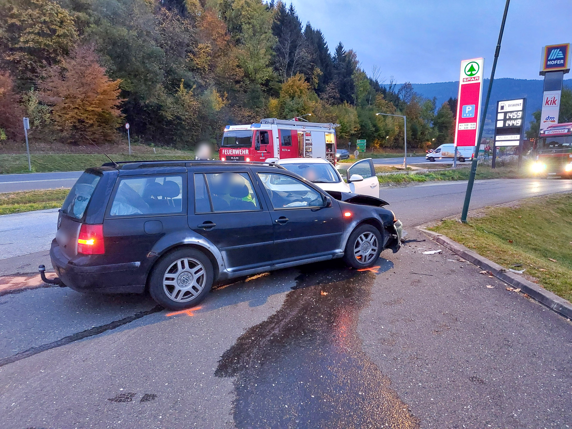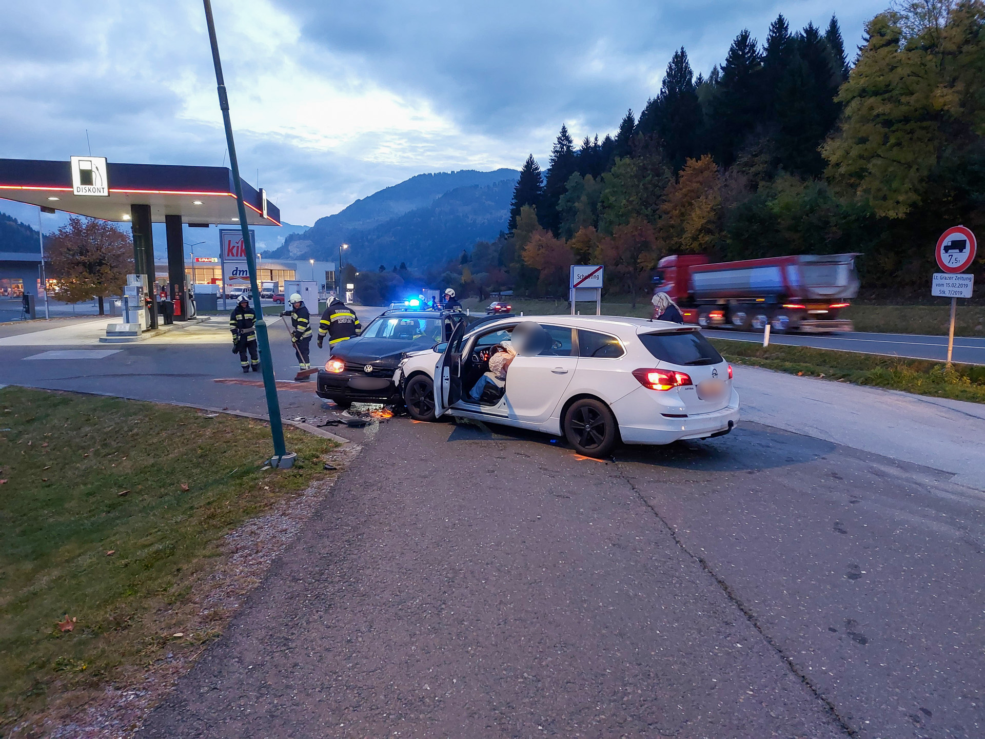 Am 21. Oktober 2025 um 07:06 Uhr wurde die FF Scheifling per Sirenenalarm zu einem Verkehrsunfall im Gewerbepark Scheifling alarmiert. Bei der Einfahrt zur Diskont-Tankstelle kollidierten zwei Fahrzeuge frontal miteinander.