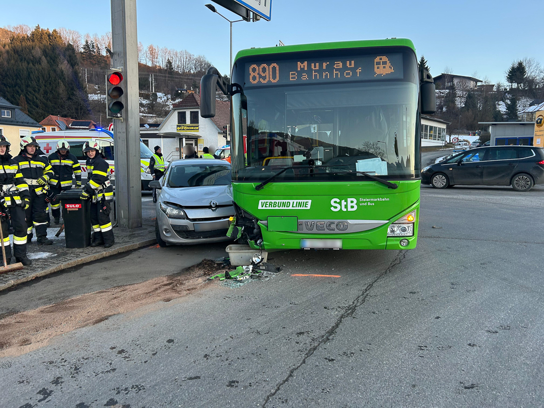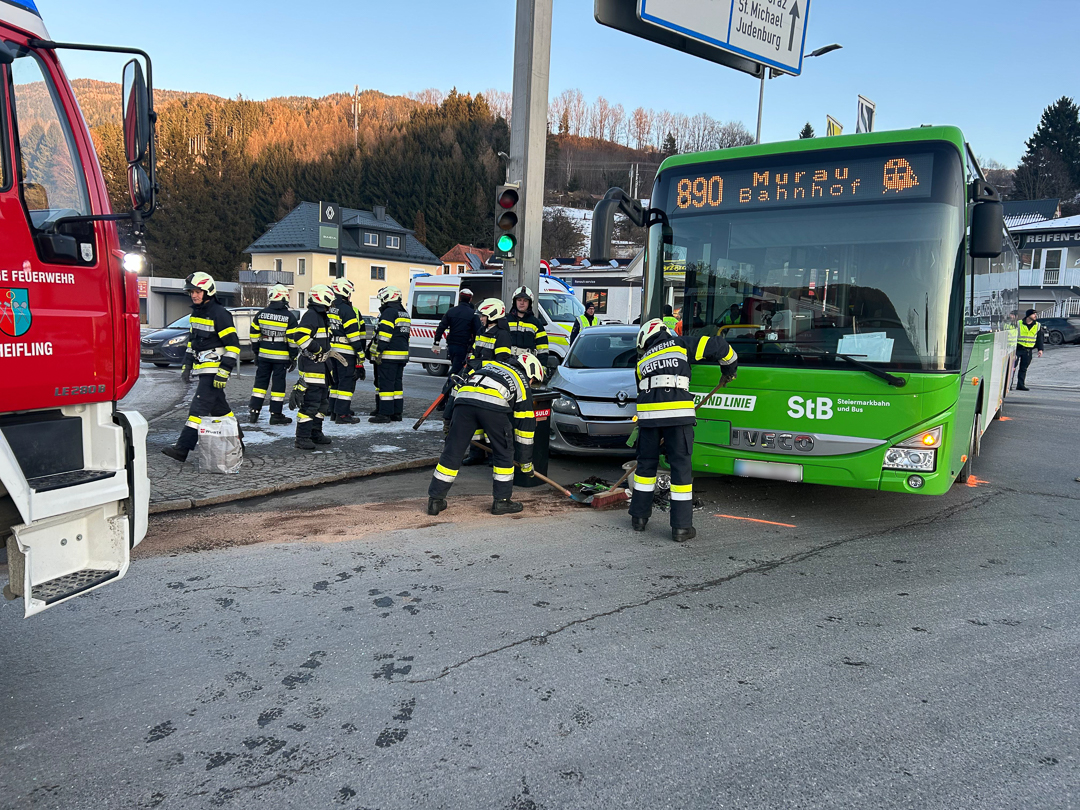 Am 19. Jänner 2026 um 15:51 Uhr wurde die FF Scheifling per Sirenenalarm zu einem Verkehrsunfall an der Kreuzung B317/B96 (Billa-Kreuzung) in Scheifling alarmiert. Ein Postbus kollidierte mit einem PKW. Im PKW wurde eine Person verletzt.