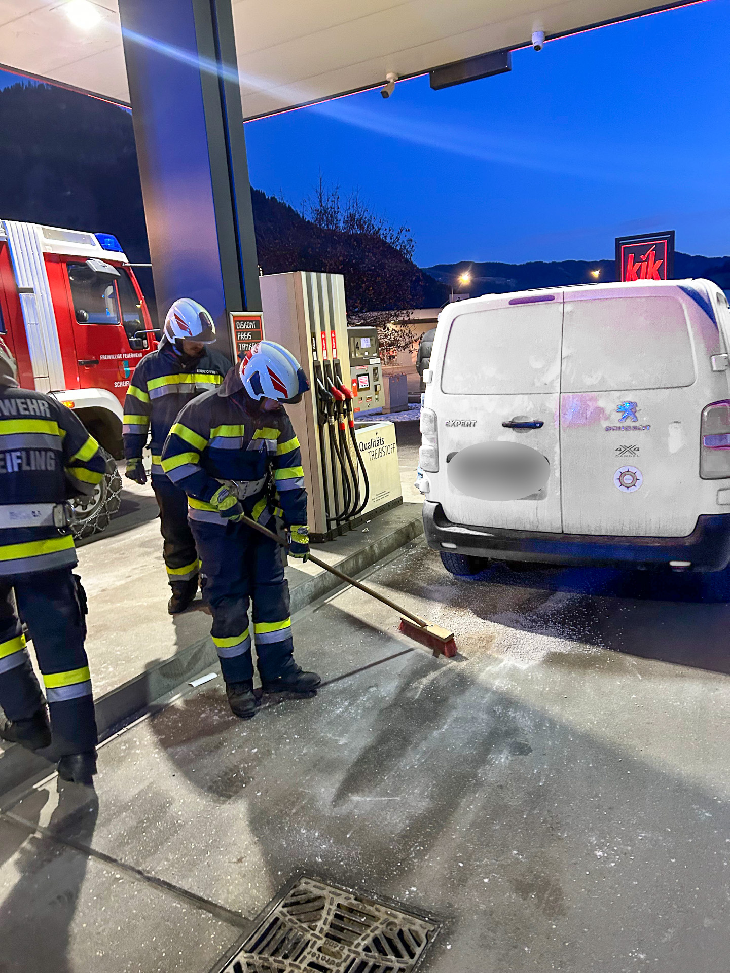 Am 23. Jänner 2026 um 06:51 Uhr wurde die FF Scheifling per Sirenenalarm zu einem Einsatz bei der Hofer Tankstelle in Scheifling gerufen